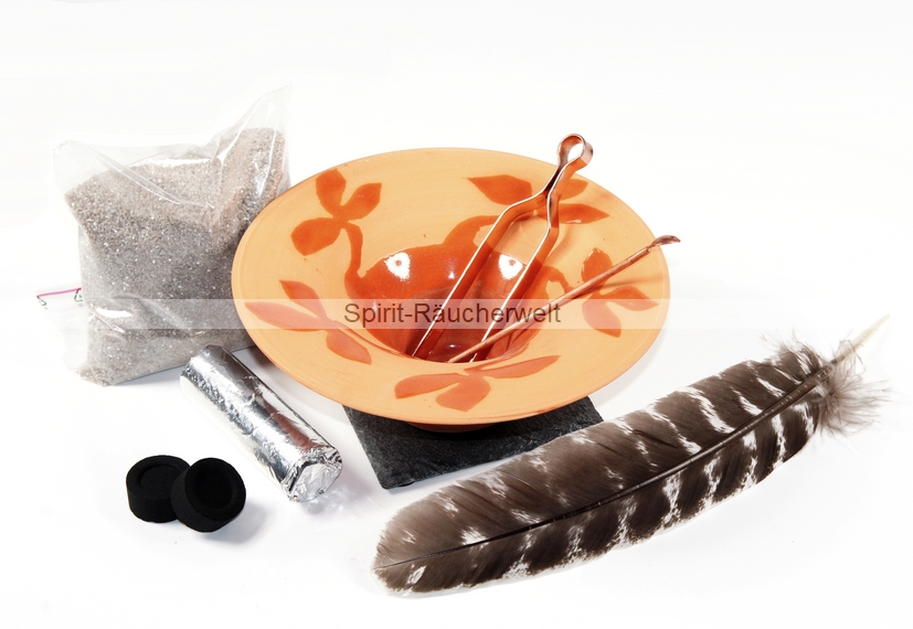Dieses Räucherset enthält alle Utensilien für ein gelungenes Räucherritual. Die aufwändig gestaltete, handgetöpferte Räucherschale aus einer allgäuer Töpferei ist ein Blickfang in jedem Raum.