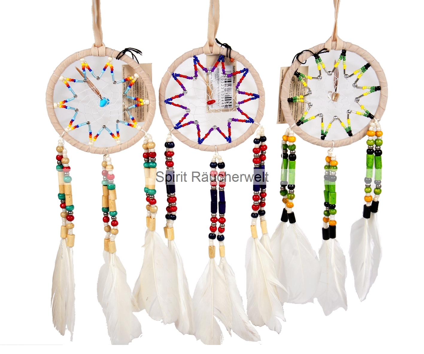 Der Traumfänger - Dreamcatcher zählt zu den indianischen Kultobjekten. Ein Traumfänger soll dem Glauben nach den Schlaf verbessern, indem er die guten Träume durch das Netz gehen läßt und, die schlechten im Netz fängt. Die schlechten Träume werden später durch die Morgensonne neutralisiert.