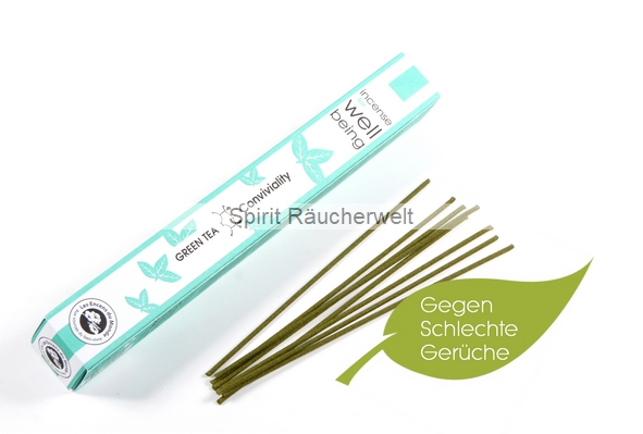 Diese Aromambiance Räucherstäbchen enthalten Flavonoide des grünen Tees. Diese natürlichen Inhaltsstoffe der Teepflanze haben die Eigenschaft, schlechte Gerüche zu zersetzen. Das Abbrennen eines einzigen Räucherstäbchens bewirkt innerhalb von 5 Minuten die Zerstörung von 75% der schlechten Duftmoleküle.