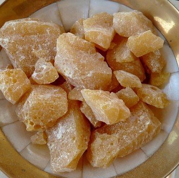 Bei diesem Vorgang wird gewöhnliches Fichtenharz, das häufig mit Rindenanteilen vermischt ist, eingeschmolzen und von den Verunreinigungen gelöst. Es entsteht ein honigfarbenes reines Harz, das sich sehr leicht im Mörser zu Pulver verreiben läßt.