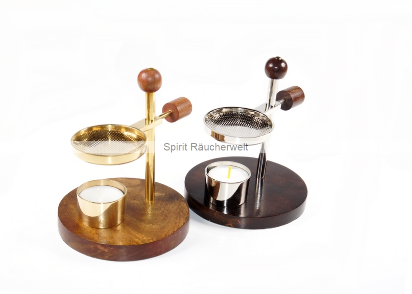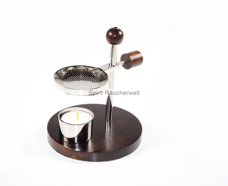 Edles Weihrauch Stövchen Modern Art | Vernickelt (silberfarben) mit Holzsockel
