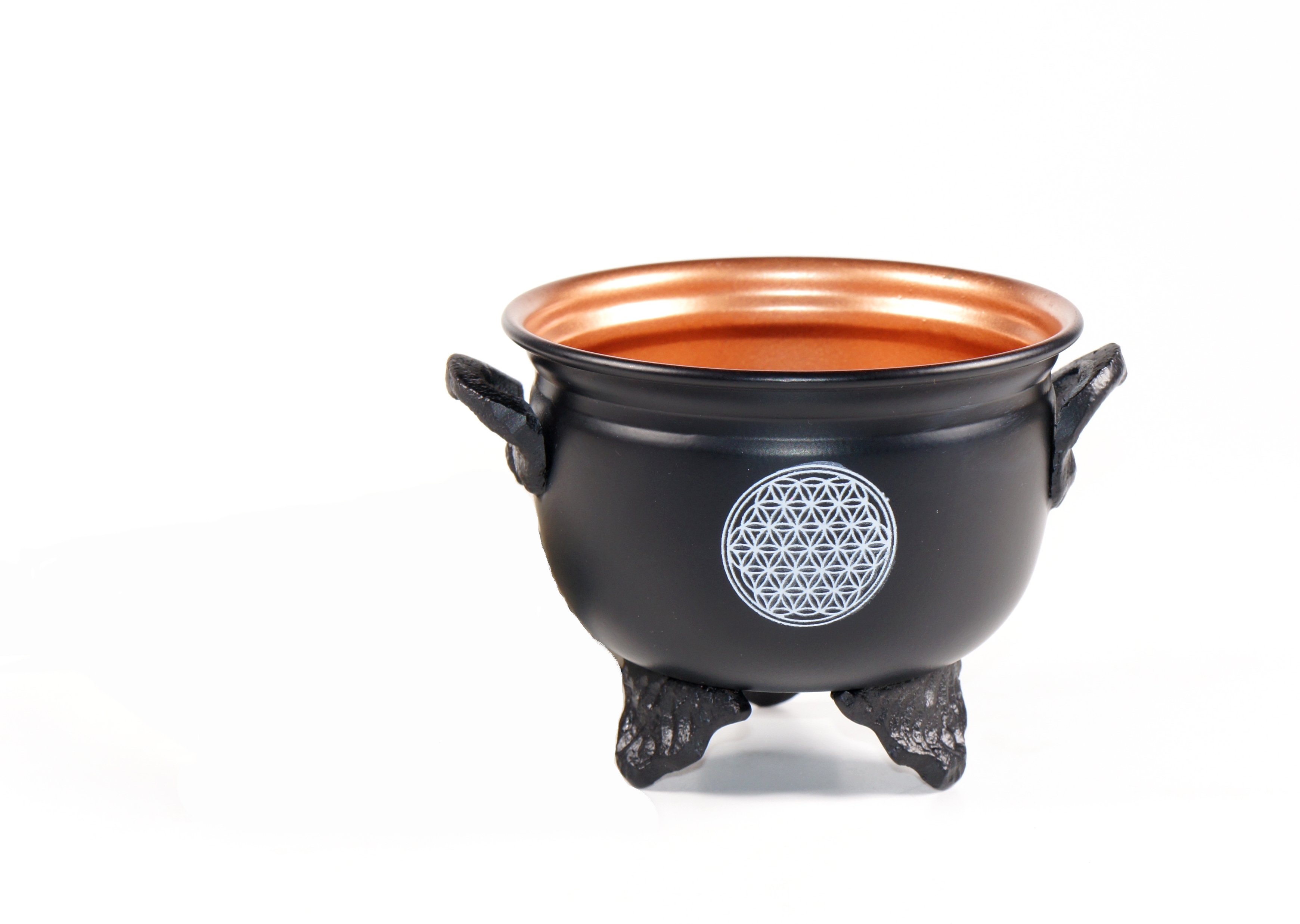 Blume des Lebens Räucherkessel - Hexenkessel aus Metallblech - D10x8,5cm