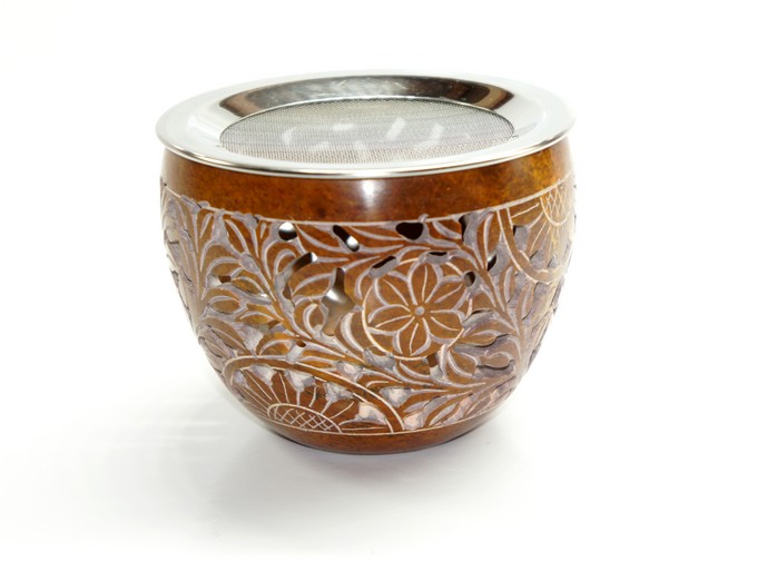 Flora ocker Räucherstövchen aus Speckstein mit Edelstahlsieb
