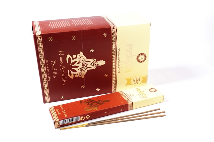 Die wiederholte Rezitation des Mantras Namo Amithaba Buddha ermöglicht es uns, unzählige Äonen negativen Karma zu reinigen und konzentriert zu meditieren. Auf Chinesisch lautet das Mantra Namo Amituofo und auf Japanisch Namu Amid Butsu. Es bedeutet: unendliches Licht, unendliches Leben und unendliche Weisheit.