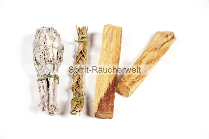 Du erhältst hier ein schamanisches Räucherset zur energetischen Reinigung von Räumen und Aura. Es enthält die drei wichtigsten indianisch -schamanischen Räucherwerke - weißer Salbei, Sweetgras und Palo Santo. Alle drei sind sehr effektive Räucherkräuter um negative Energien und Elemente zu verscheuchen und eine segensreiche Atmosphäre zu schaffen. Du kannst die Kräuter bei Bedarf einzeln verräuchern oder ein Reinigungs-Räucherritual damit gestalten.