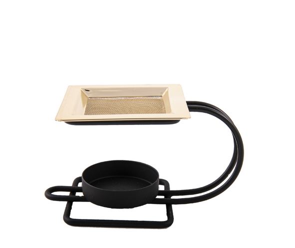 Kasir Weihrauch Stövchen aus schwarzem Metall mit goldfarbenem Edelstahlsieb
