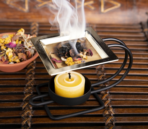 Tipp: Streuen Sie etwas Räuchersand auf das Sieb bevor Sie das Räucherwerk auflegen, dies verhindert größere Verklebungen. Auch verbrennt das Räucherwerk, besonders Kräuter nicht mehr so schnell, es entsteht weniger Rauch und feinerer Duft.