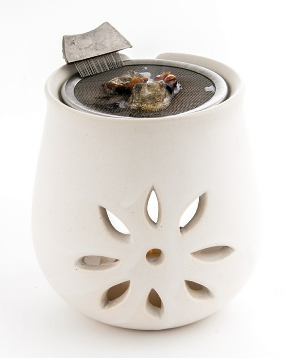 Räucherstövchen Blüte weiß mit Edelstahlsieb