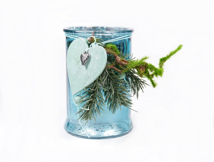 Inhalt: Türkises Glaswindlicht mit dekorativen Elementen