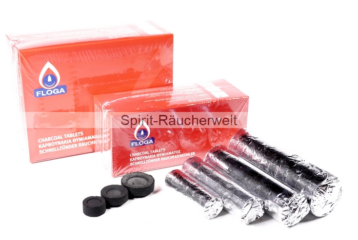 Erstklassige raucharme Schnellzünderkohle in verschiedenen Größen 27 - 33 - 40 - 50mm, als Einzelrolle oder im Karton.