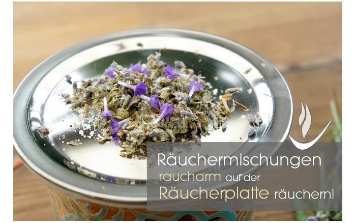 Wenn Sie die feinen Räucherkräuter und Blütendüfte unverfälscht genießen möchten, räuchern Sie diese auf dem Räuchersieb oder einer Räucherplatte. Streuen Sie eine feine Sandschicht auf das Sieb und geben das Räucherwerk auf den Sand. So verbrennen die Räucherkräuter nicht mehr so schnell und geben ihre feinen Energien und Düfte langsam und schonend an die Umgebung ab. Die Sandauflage verhindert auch ein Verkleben des Räuchersiebs. Auf der Räucherplatte können Sie das Räucherwerk direkt auflegen.