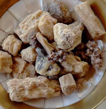 Salharz läßt sich auf dem Räucherstövchen (dazu das Harz im Mörser pulverisieren und auf die Sandschicht im Räuchersieb streuen) verräuchern. Hier entwickelt sich der feine Salduft sehr dezent.