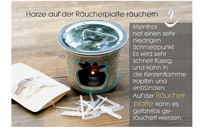 Nicht jedes Harz lässt sich auf dem Sieb mit einem Teelicht verräuchern. Oft hilft es, wenn Sie das Harz mörsern. Sollte die Hitze des Teelichtes nicht ausreichen, dann lässt sich das Harz nur mit der Räucherkohle verräuchern oder in einem speziellen Weihrauchbrenner. Aber die Kohle nicht auf das Sieb legen - es würde irgendwann durchglühen - sondern in eine mit Sand gefüllte Räucherschale oder auf ein speziell für Kohle geeignetes Gitternetzgefäß.