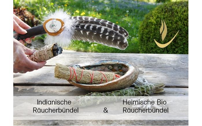 Auch Räucherbündel aus heimischen Kräutern wie Salbei und Beifuß, sowie Räucherbündel-Set mit Räuchermuschel und Räucherfeder zum spirituellen Räuchern und zur energetischen Reinigung findest du in unserem Räuchersortiment. Ebenso Räucherbündel Großpackungen zu günstigen Preisen.